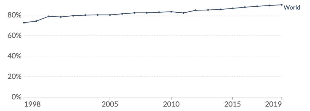 The more you reflect, the more of these dependencies you discover for the internet. Stable, non-extreme weather (also becoming rarer with climate change, and more exclusive to wealthier countries). Non-censoring governments (30 of 70 countries assessed by Freedom House experienced a deterioration in internet freedom in 2020-21). Access to a steady electricity supply (also improving very, very slowly and not at all in many countries).